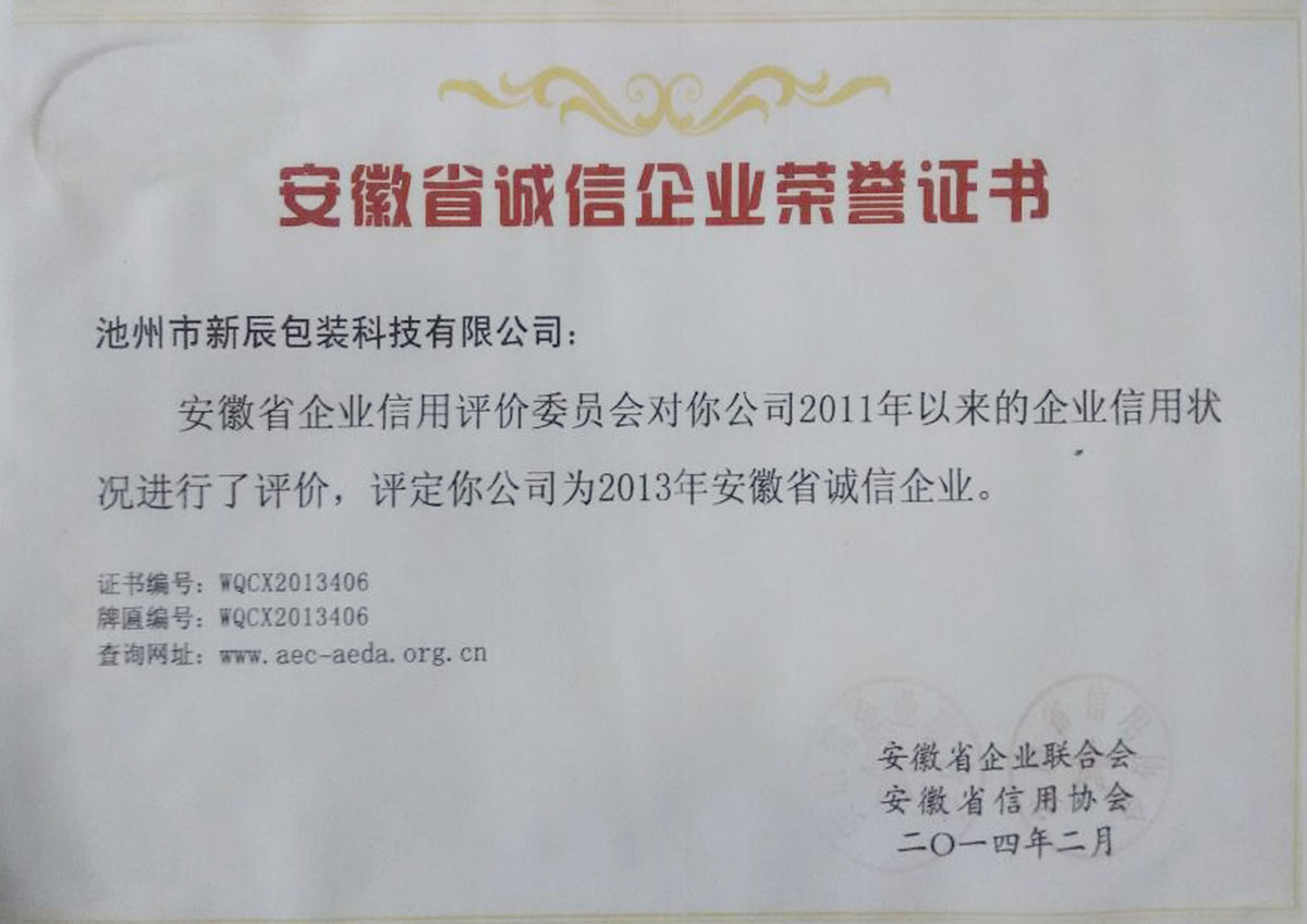 我公司榮獲安徽省誠信經營企業榮譽稱號